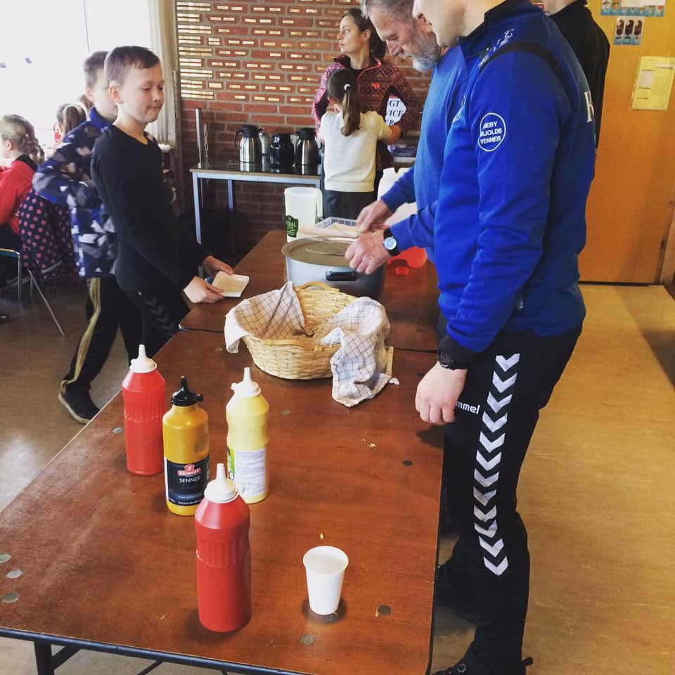 Efter en times træning stod Henning klar med pølser og rød saft i 'Cafe Nordjyske bank' 🛑🌭